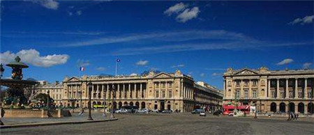 巴黎的一座古老的六星級(jí)豪華酒店,位于協(xié)和廣場10號(hào)(北側(cè)),香榭麗舍大街東端??死镉捍箫埖觊_始于蜂蜜色的大理石大堂,近旁是充滿水晶吊燈和裝飾有7種不同大理石的Les Ambassadeurs 餐廳。酒店的大廳充滿了17和18世紀(jì)掛毯,吊燈,鍍金和織錦家具,精致的雕塑,和路易十六的柜櫥和椅子。歷史和奢華的神秘復(fù)合體!