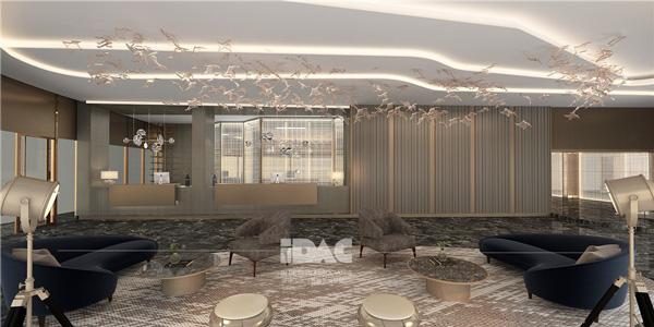 精品酒店大堂裝修設(shè)計中,大氣與美觀是最基本的要點;大氣主要通過空間性與視覺感實現(xiàn),空間不可太小,在充分利用原有建筑結(jié)構(gòu)的基礎(chǔ)上可進行適度擴張,對于無法擴張的空間,可采用鏡面材質(zhì)造型或飾面的處理手法;空間的高度不可太低,從空間感的設(shè)計角度來講,越高的空間越有氣勢。另一方面,美觀的效果主要通過造型、材質(zhì)選擇及燈光三個方面進行設(shè)計。